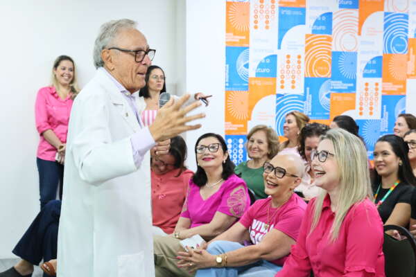 O evento aconteceu na Sala Multiuso do Laboratório Íris que ficou lotada para a palestra do médico mastologista Luiz Porto, chefe do serviço de Mastologia da Maternidade Escola Assis Chateaubriand.